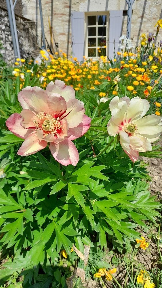 This springtime this year in the Lot et Garonne has been one of the best we have ever known with a sequence of flowers in the countryside and gardens that has taken our breath away. Perhaps it is a plant reaction to the sequential heat-waves we had last year. Plants flower bountifully when stressed as a way of compounding chances of survival. Here are some examples of my garden over the weeks in May. My peony even sprouted a new colour flower like a cross pollination.